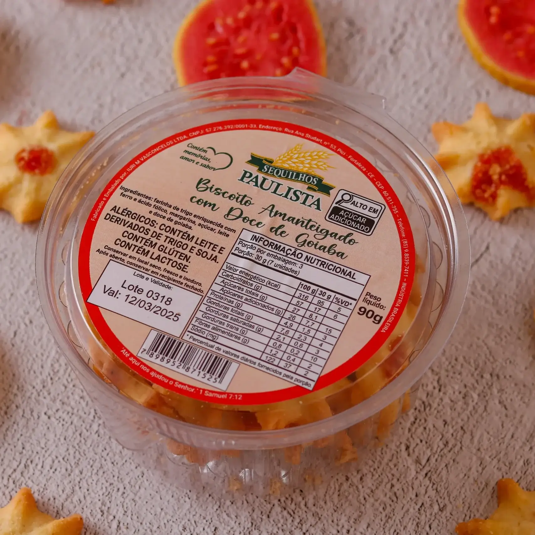 | Ingredientes: | Ácido fólico, Açúcar, Doce de goiaba, Farinha de trigo enriquecida com ferro, Leite, Margarina  |